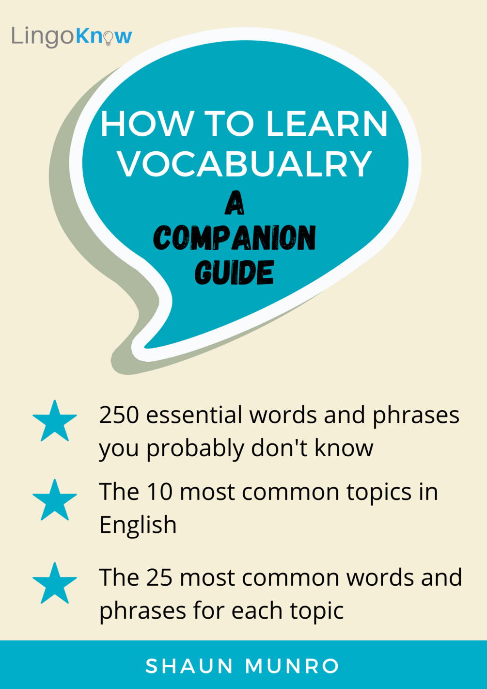 This ebook is a collection of 250 essential vocabulary words in 10 of the most common different topics in English. It is a companion guide to the "How to Learn Vocabulary - An Essential Guide" ebook. The words used in this books are best used with the app "Anki."